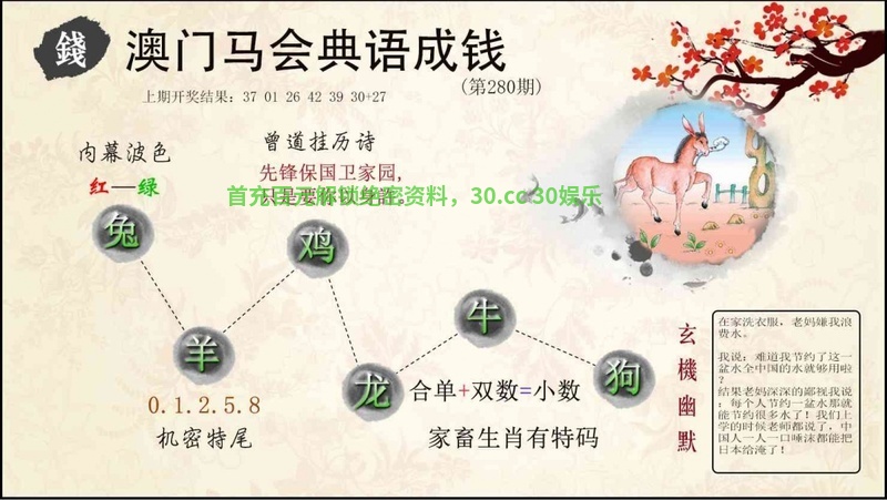 280期:男女两肖『女肖+牛龙』开鼠42错 |